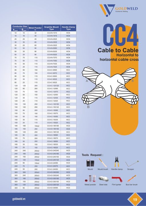 - Khuôn hàn hóa nhiệt Goldweld CC4-N-5050 loại hàn nối kiểu chữ T cọc – cáp